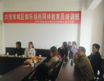 为顺利开展低档暗娼嫖客干预,营造支持性环境,根据3月8日老板座谈会会议要求,六安姐妹之家工作组于3月22日在市疾病预防控制中心召开六安城区低档娱乐服务场所同伴教育员会议,十多家娱乐场所的服务小姐参加了会议。市性病艾滋病防治协会唐庆荣会长、王承杰副会长以及有关人员也出席了会议。