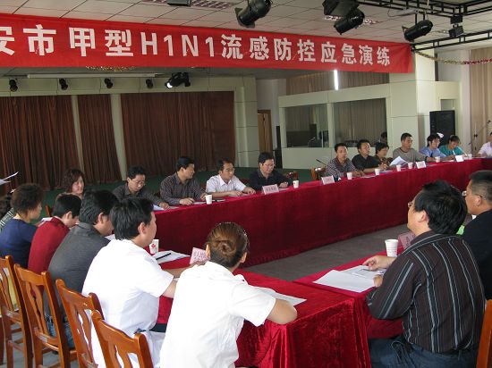 为了进一步检验和提高我市卫生部门应对甲型H1N1流感应急处置和医疗救治能力,5月21日,我市卫生局举办甲型H1N1流感防控应急演练。演练分为桌面推演和现场救治演练两大部分,分别由市疾控中心和市人民医院承办。市直暨金安、裕安等11家卫生单位参与了本次演练。各县区卫生部门和市直有关卫生单位代表60余人现场观摩了本次演练。市人大副主任曹承芳亲临现场观摩。