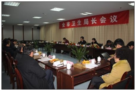12月23日,全市卫生局长会议在卫生干部培训中心召开。市卫生局领导潘健、沈永平、朱德昌、曹云龙、姜瑞平、杨阳出席会议,各县区卫生局长和市直卫生单位主要负责人参加会议。