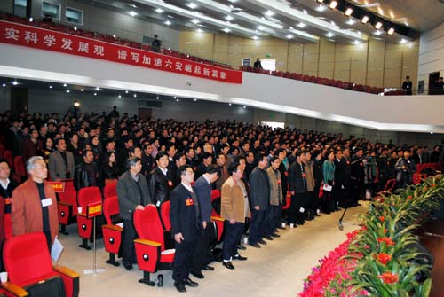 2月22日下午,市行政中心大会堂内洋溢着喜庆祥和的气氛,中国人民政治协商会议六安市第三届委员会第一次会议在此隆重开幕。