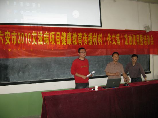 为了让中学生了解艾滋病知识,增强防范意识,根据《全球基金艾滋病项目办公室健康传播材料开发使用技术指南》和《安徽省全球基金中国艾滋病项目健康传播材料开发使用计划》等有关文件精神,市疾控中心于2010年5-6月在六安市第九中学学生中开展健康教育材料(作文簿)传播活动。