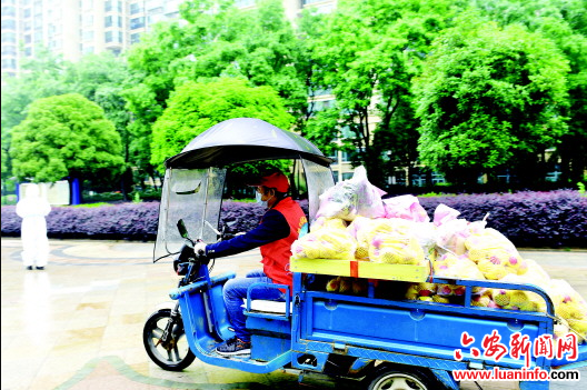 5月19日,志愿者在为居民运送水果。 皖西日报融媒体记者 陈力 摄