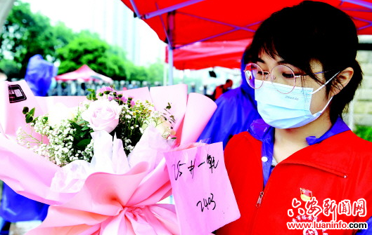 5月19日,一名志愿者为隔离居民送上订购的鲜花。 皖西日报融媒体记者 陈力 摄