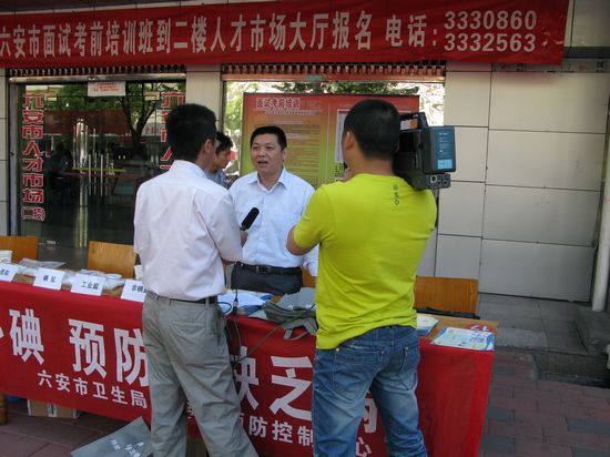 宣传日当天,市县区多部门联动积极开展宣传咨询活动。疾控中心和盐务局在城区主干道设立了宣传咨询台,并现场演示合格碘盐与劣质碘盐的鉴别方法,耐心解答群众提出的问题,重点宣传如何科学保管和正确使用碘盐,提高了广大群众对碘缺乏病危害的认识,现场宣传咨询活动受到了群众的热烈欢迎。市卫生局、盐务局和疾控中心领导亲临宣传活动现场参与宣传咨询活动,看望慰问宣传咨询人员。六安电视台等新闻媒体对本次宣传活动做了采访报道。