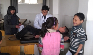 11月19日,我中心抽调经验丰富、责任心强的医护人员成立专门的体检组,并从门诊部抽调了两名从事疫苗接种工作20余年的护士负责内科和结核菌素实验,又从市中医院邀请一名年富力强的外科医师,会同以往长期从事学生体检工作的公共卫生科工作人员,一起前往特教中心开展爱心体检活动。