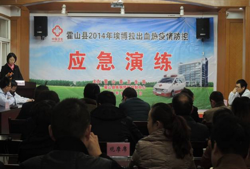 为进一步加强全县埃博拉出血热疫情防控工作,强化对疫情防控和病例救治转运等工作的技术指导,提高应急处置能力,12月4日上午,县卫生局开展了埃博拉出血热疫情防控应急演练,共有3支代表队参加。县政府应急办、卫生局、人民医院、中医院、疾控中心、卫生监督所及各乡镇卫生院负责人,县直卫生单位相关人员50余人观摩演练。