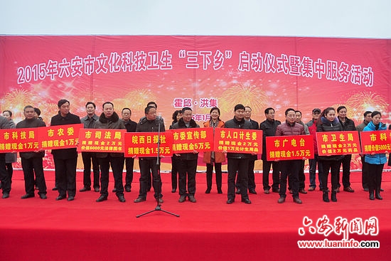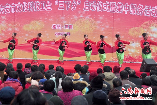 六安新闻网讯 1月14日上午,我市2015年文化科技卫生“三下乡”活动启动仪式暨集中服务活动在霍邱县洪集镇会馆村举行。活动当天,在会馆村农民文化广场,举行了多项服务活动,受到当地百姓的欢迎。