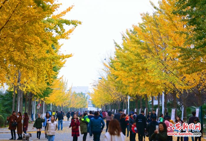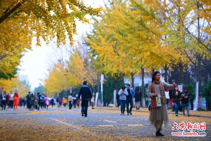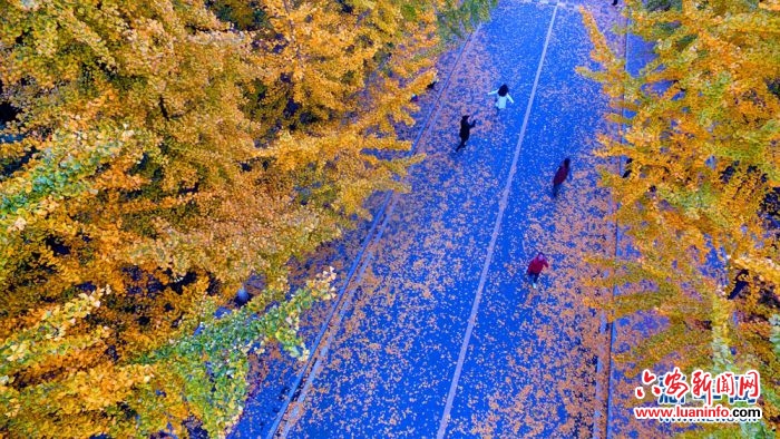 初冬时节,地处大别山区的六安市皖西学院内近500米长的银杏大道满目金黄,随风飘落的银杏叶宛如黄色的丝毯铺在路面,成为初冬校园里的一道靓丽的风景,吸引大量市民前来观赏。 银杏大道旁还设有寄语墙,人们将写在银杏叶上的美好心愿贴在寄语墙上,营造出浓郁的校园人文气息。(陈力摄)