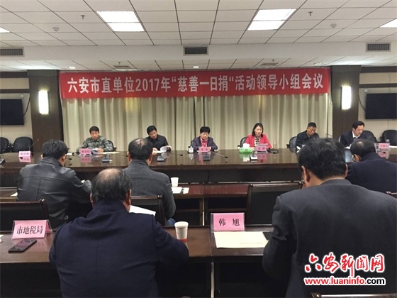 六安新闻网讯 11月24日,市直单位2017年“慈善一日捐”活动领导小组会议召开,这标志着我市2017年“慈善一日捐”活动正式启动。