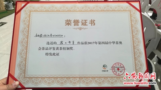 六安新闻网讯 11月26日,第四届中华茶奥会在杭州闭幕。由安徽省霍山县吉庆茶叶专业合作社等社选送的样品分获茶品评鉴黄茶组银、铜两奖,囊括了该组奖项。金奖空缺。