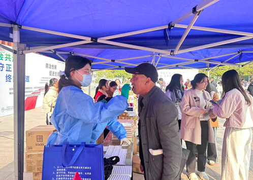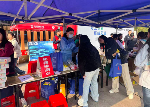 活动现场还设立大型展板,工作人员身着卡通服装,手举“如果我是艾滋病病毒感染者,你愿意拥抱我吗?”牌子来增强社会对艾滋病患者的理解和关爱,消除歧视。此外,现场提供了便捷的HIV快速检测咨询服务,引导学生树立主动检测、及时预防的健康责任意识。